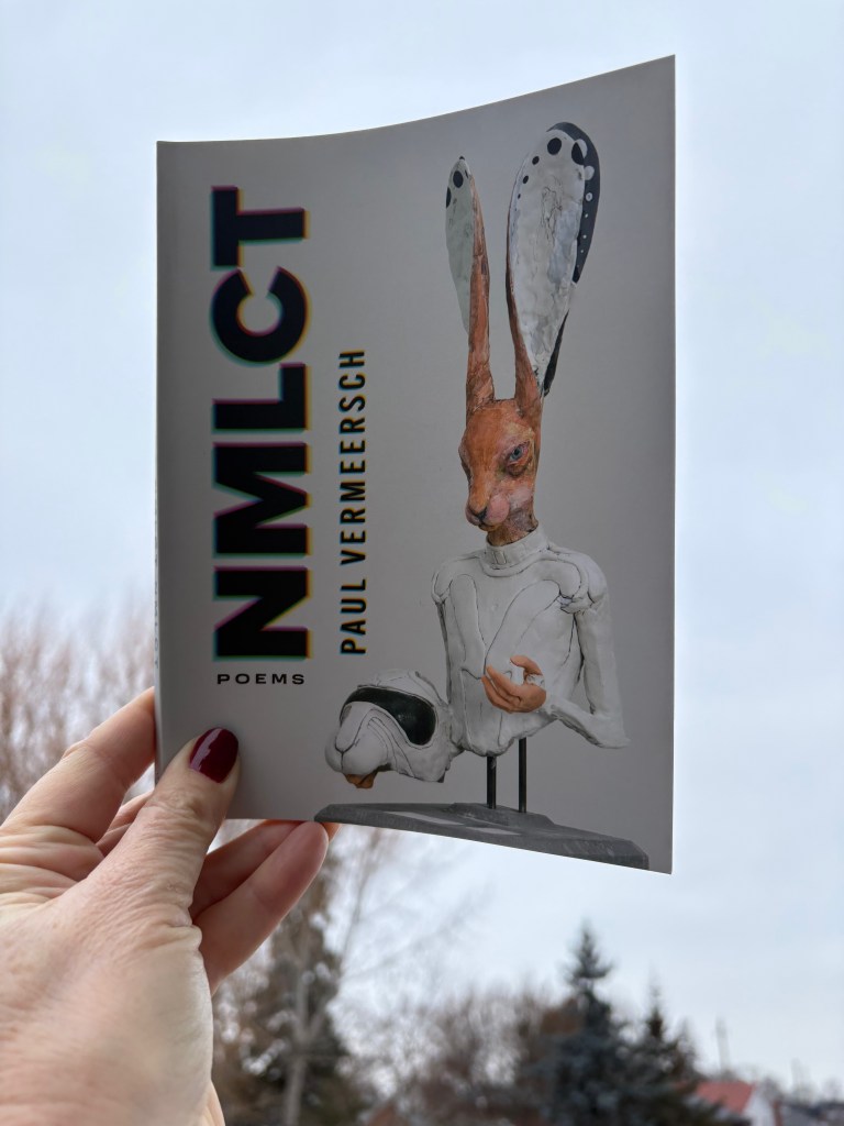 After reading Paul Vermeersch’s poetry collection NMLCT I closed my eyes. An image kept repeating itself. I am driving on an empty highway toward an abandoned city and on a billboard above the highway flashes an important message that I miss because I’m driving too fast. When I turn the car around to read the message again, the sign is gone and what I was supposed to do in this abandoned city, what I needed to know to fix the world, I no longer know. So, I read the book again.